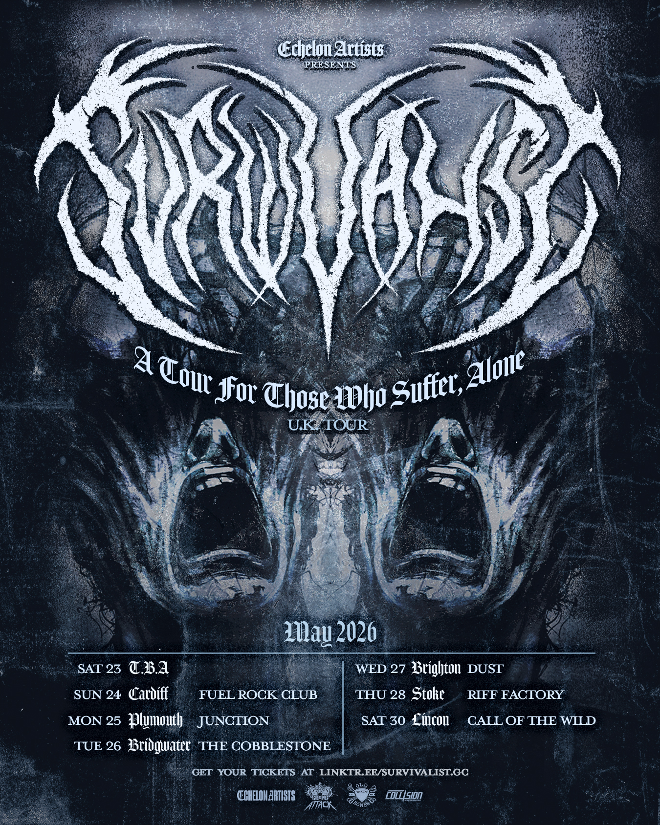 Survivalist are a four-piece metal band from Belfast, Ireland, featuring Gavin Sharp (vocals), Nick Butcher (guitars), Lee Shaw (bass), and Rhys Fraser (drums).