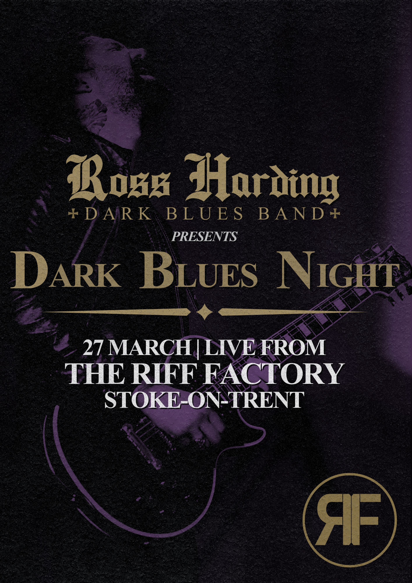 Ross Harding and The Dark Blues Band performing original music from the new album The Blood & The Blues, alongside re-imagined classics from Robert Johnson, BB King & more. A powerful live show where the soul of the blues meets the raw edge of modern rock. support TBC